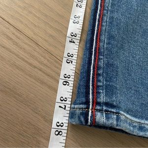 Tommy Hilfiger High rise straight ankle jeans with signature red piping on the sides.