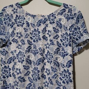 TOMMY Hilfiger Floral blue and cream Lace Blue Dress size 8