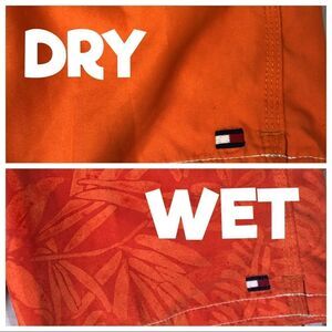 Solid orange when dry, floral print appears when they get wet!
