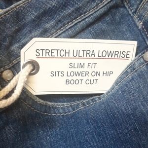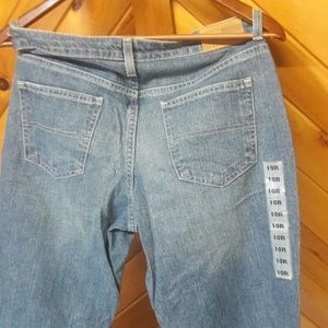 Awesome new jeans by Tommy Hilfiger are size 10 regular. Cotton/spandex blend, slim fit boot cut. Inseam 31.5", legs 9.5" wide at bottom, 17" across hips lying flat.