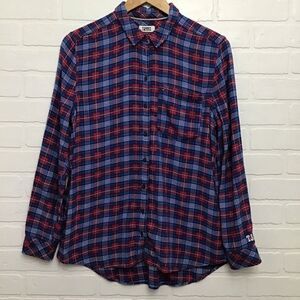 TOMMY Hilfiger flanel plaid button down shirt red blue white long sleeves medium