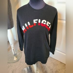 Soft Tommy Hilfiger sleepwear top could be worn as sweatshirt. Tiny bit of pilling but could easily be shaved. no pulls in lettering