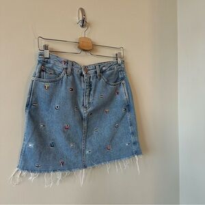 TOMMY Hilfiger-90’s Inspired Logo/Spell Out Back Tag Raw Hem Skirt (Size:26)