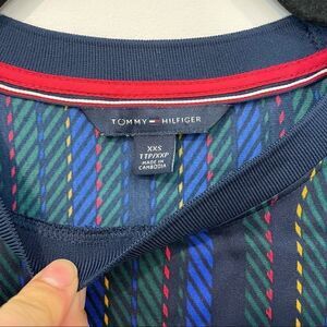 Tommy Hilfiger women's T-shirt. Will be your favorite from the essential T-shirt. Shirt turtleneck, tight waist, silky. Navy color with striped print. Like from classic 80s👌🏼
