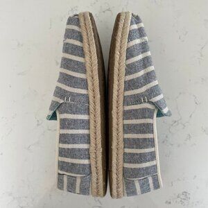 TOMS Alpargata Rope Slip On Stripe Recycled Canvas Shoe Blue Off Wht Sz 9 NWOT