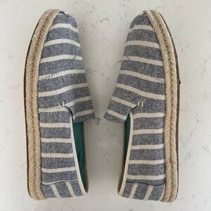 TOMS Alpargata Rope Slip On Stripe Recycled Cotton Canvas Espadrille Shoes in Blue + Off White NWOT