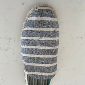 TOMS Alpargata Rope Slip On Stripe Recycled Cotton Canvas Espadrille Shoes in Blue + Off White NWOT