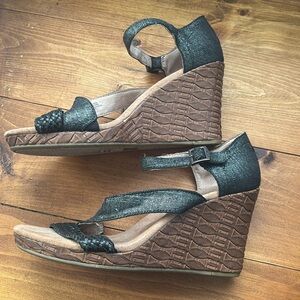 TOMS | Clarissa Wedge Sandal in Black Metallic Linen Size 9.5US