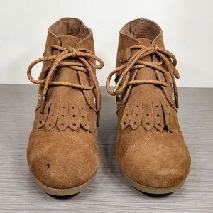 TOMS Desert Kiltie Fringe Wedge Bootie, Brown Suede, Womens Size 7.5 US / 38