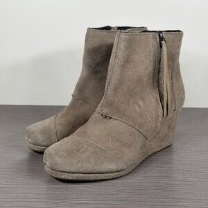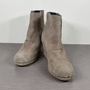 TOMS Desert Suede Wedge Bootie, Taupe Suede, Womens Size 11