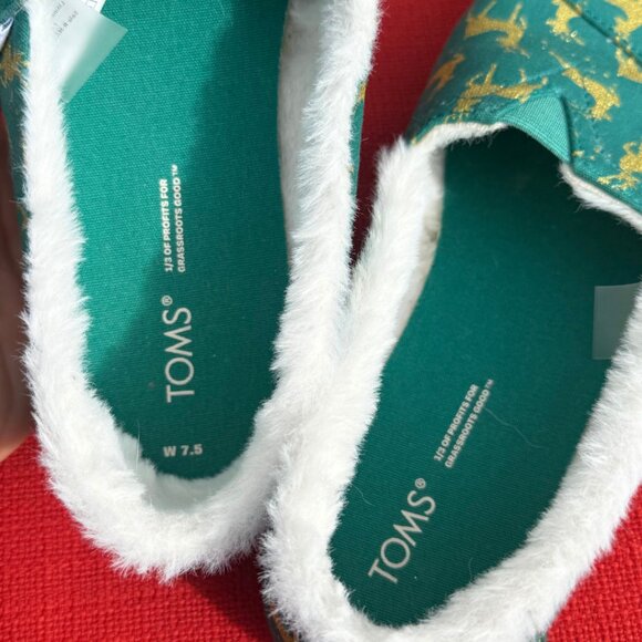 TOMS Green Glitter Reindeer Faux Fur Slip-On Shoes - Womens US 7.5 - NWOT
