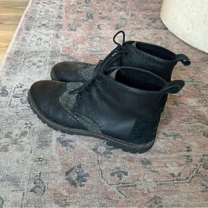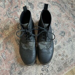 TOMS Men's Black Leather Wingtip Lace Up Brogue Boots with Vibram Soles