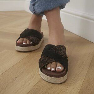 Step up your slides. With a molded microsuede footbed, a stylish rope wrapped midsole and a mixed leather and woven upper, the Paloma is a comfy slide you'll wear both around the house and out on the town.