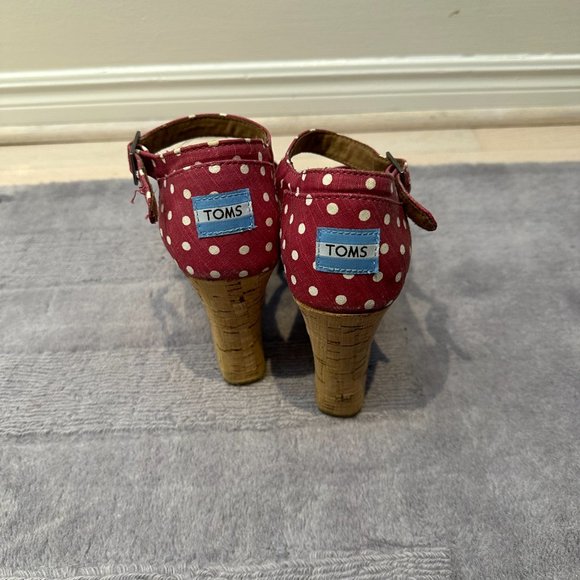 TOMS Shoes Red and White Polka Dot Strappy Wedges