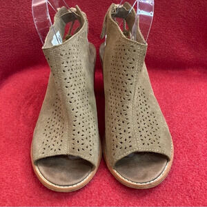 TOMS Sz 9.5 Stacked Heel Perforated Suede Peep Toe Tie in Back Booties Shooties