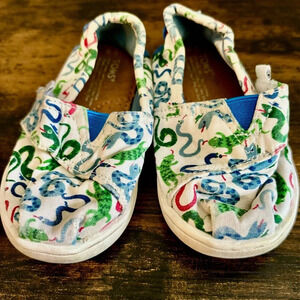 TOMS adorable Alpargata infant flat sneakers in “Cobalt Snakes” Size 5T. In very good condition, gently cleaned and ready to wear.