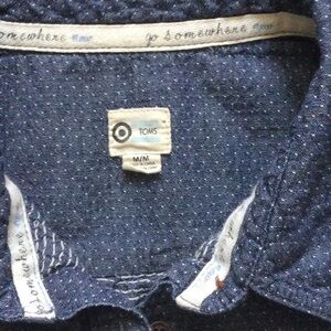 TOMS chambray popover shirt. Comfortably soft. Polka dot fabric. Excellent condition. Sad that it didn’t fit me; hoping it will find a new home!