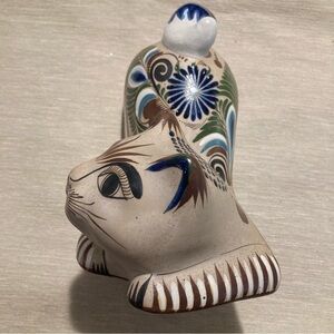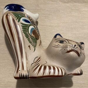 TONALA CERAMICS Stretching Cat Hand painted Ceramic Decoration Figurine Cat. Beautiful and unique. Folk art.