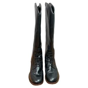 TONY MORA. Black Genuine Leather Upper & Sole Pull On Boot Lace Detail US Sz 9
