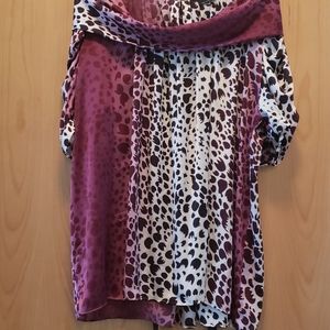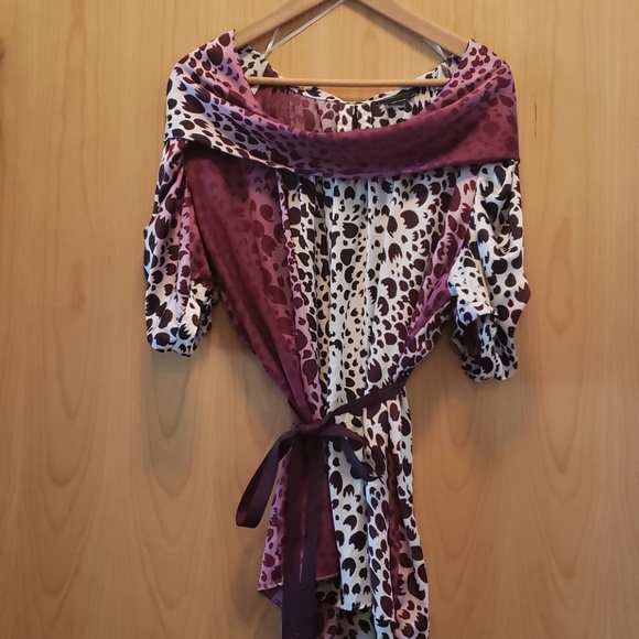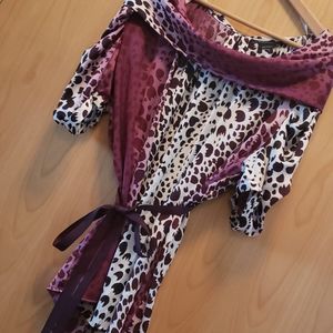 BCBG Top * not your typical animal print, print * multicoloured * slips over your head * wear it tied or open