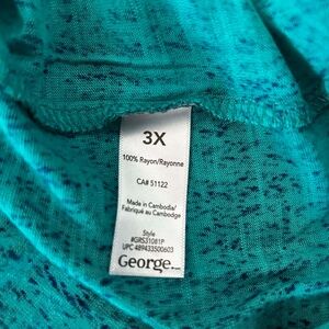 TOP, COLD SHOULDER, BLUE & TEAL, SIZE 3X, LONG LENGTH, VEE NECK, CAP SLEEVES, GEORGE, IN BAG, TAG ON, NEVER WORN