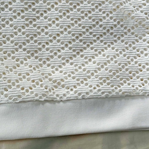 TOP, "EYELET" CUTOUTS, ALMOST WHITE, SIZE 5X, ROUND NECK, SHORT SLEEVES, POLYEST