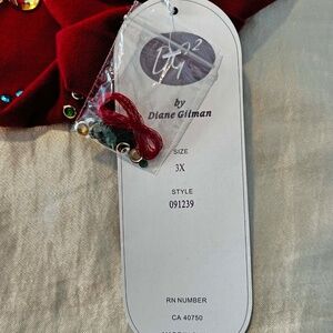 TOP, HAND SEWN MULTICOLOUR BEADS, RED, SIZE 3X, ROUND NECK, LONG SLEEVE, DIANE GILMAN, IN ORIGINAL BAG, TAG ON, NEVER WORN