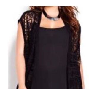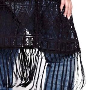 TOP, KIMONO, ALLOVER CROCHET, LONG FRINGE, EXTENDED SLEEVES, BLACK, COTTON, SZ 4X, ADDITION ELLE, TAG ON, NEVER WORN