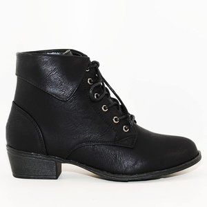 TOP Moda EC89 Womens Foldover Lace Up Low Chunky Heel Ankle Booties