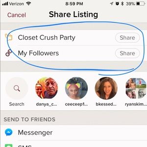 @willowsage2 @willowsage2 Hi Iris! Yes, ma’am, go to your closet ➡️ press down on each posted item ➡️ as your pressing down you should receive a pop-up with a couple options and one will be “share” ➡️ I have added 3 photos that should help you through the sharing process. If that doesn’t make sense make sure you let me know because I may have missed a detail or two. During the party’s you want to share the appropriate items when possible.