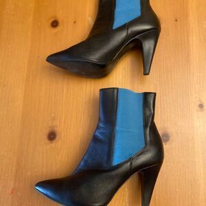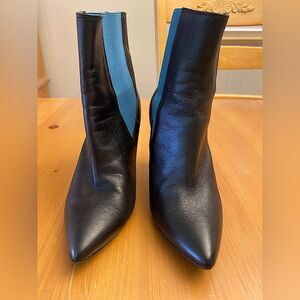 Black leather ankle boots with teal elastic insert. Made in Spain for Topshop. Size 37