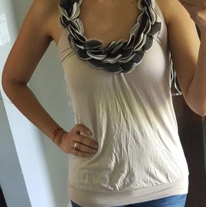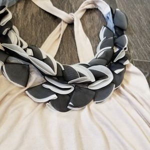 Beautiful long top with nice fabric detail on the chest. Size small. Armpit to armpit 15". Very pretty on.