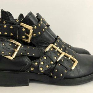 TOPSHOP Ark Booties Black Leather Studs Buckles 7