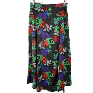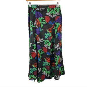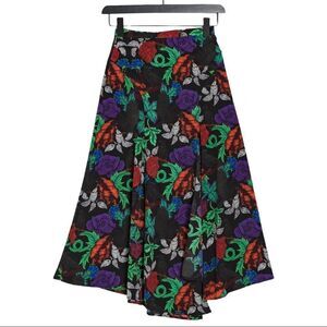 TOPSHOP Black Floral Crows Print Full Skirt w/ Front Slit Size 6