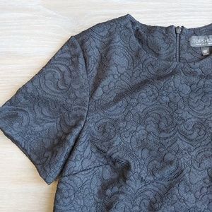 TOPSHOP Black Lace Short Sleeve Dress with subtle side cutouts at the waist.