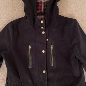 Perfect for the spring weather. A light jacket from TOPSHOP, size US 2, two big pockets in the front. Plaid and black lining. Nice big hood. Great condition.