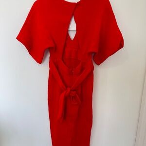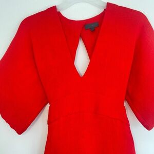 TOPSHOP Bold Red V-Neck Midi Dress with Flutter Sleeves