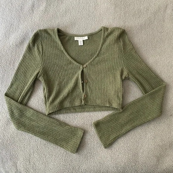 TOPSHOP Cropped Ribbed Green Cardigan