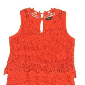 TOPSHOP Dress Floral Crochet Orange Lined V-Neck Mini Sleeveless Women's Size 4