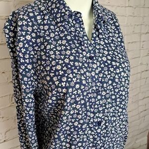 Blue button down shirt with small daisies print
