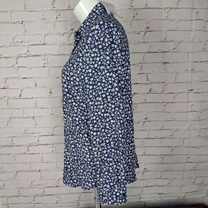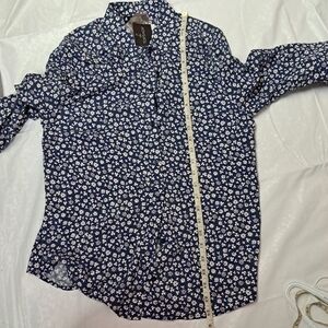 Blue button down shirt with small daisies print