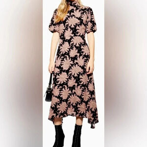 TOPSHOP Flowy Paisley Floral short Sleeve Midi Dress Sz 2