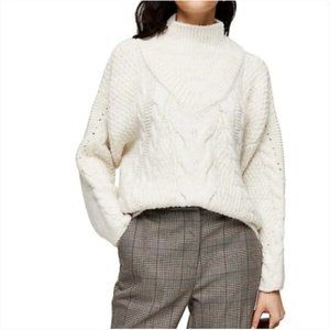 TOPSHOP Ivory Mock V Cable Knitted Sweater