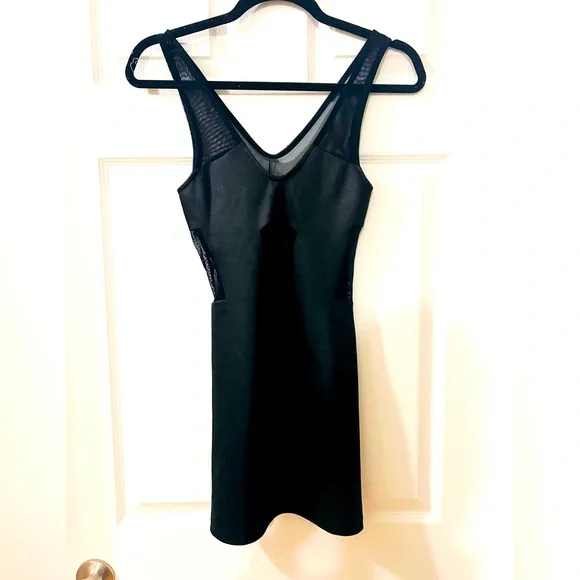 Small black mini dress, sheer back 🔥 Comfy, slightly stretch fit. Perfect for a night out with the girls or a date 👯‍♀️