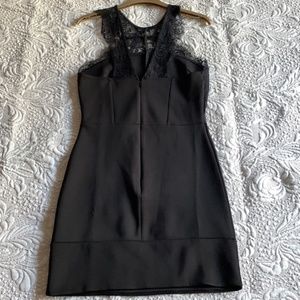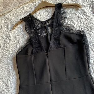 in excellent condition lace halter back and front Eyelash Lace Neckline Black Halter Bodycon Dress waist is approx 13" - 13.5"