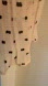 Somewhat sheer fabric, light pink with black embroidreed polkadots.