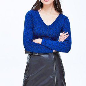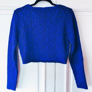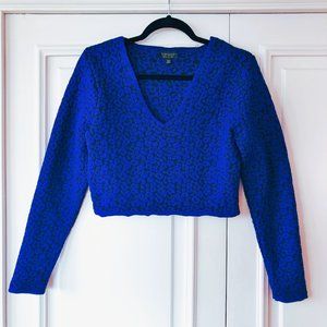 TOPSHOP Leopard-Print Blue & Black V-Neck Cropped Sweater Size M UK14/US10/EU42