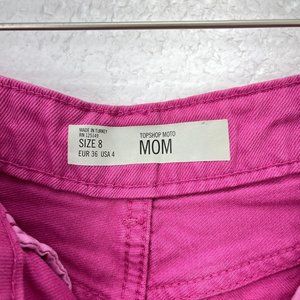 TOPSHOP MOTO MOM High Rise Pink Denim Short Size 8