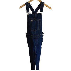 TOPSHOP Moto 6-pocket styling Overalls in Indigo. Size 25. Features silver button snap closure, indigo wash, tapered leg, full length and 6 pocket styling. Good condition. Fits true to size.