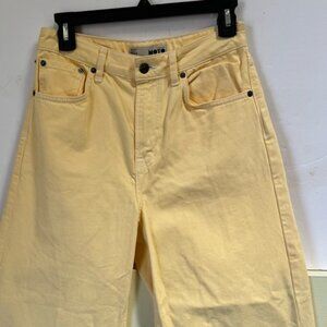 TOPSHOP NEW Wide Leg High Waist Crop Jeans Cotton Pale Yellow Pant Zip Preppy 28